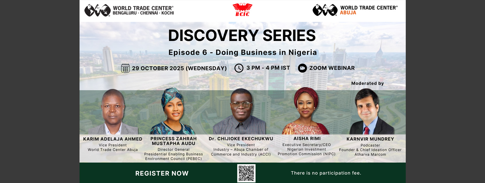 Learn about the Nigerian business landscape in the sixth episode of our virtual initiative, the Discovery Series, organized in collaboration with the Bangalore Chamber of Industry and Commerce (BCIC) and WTC Abuja.